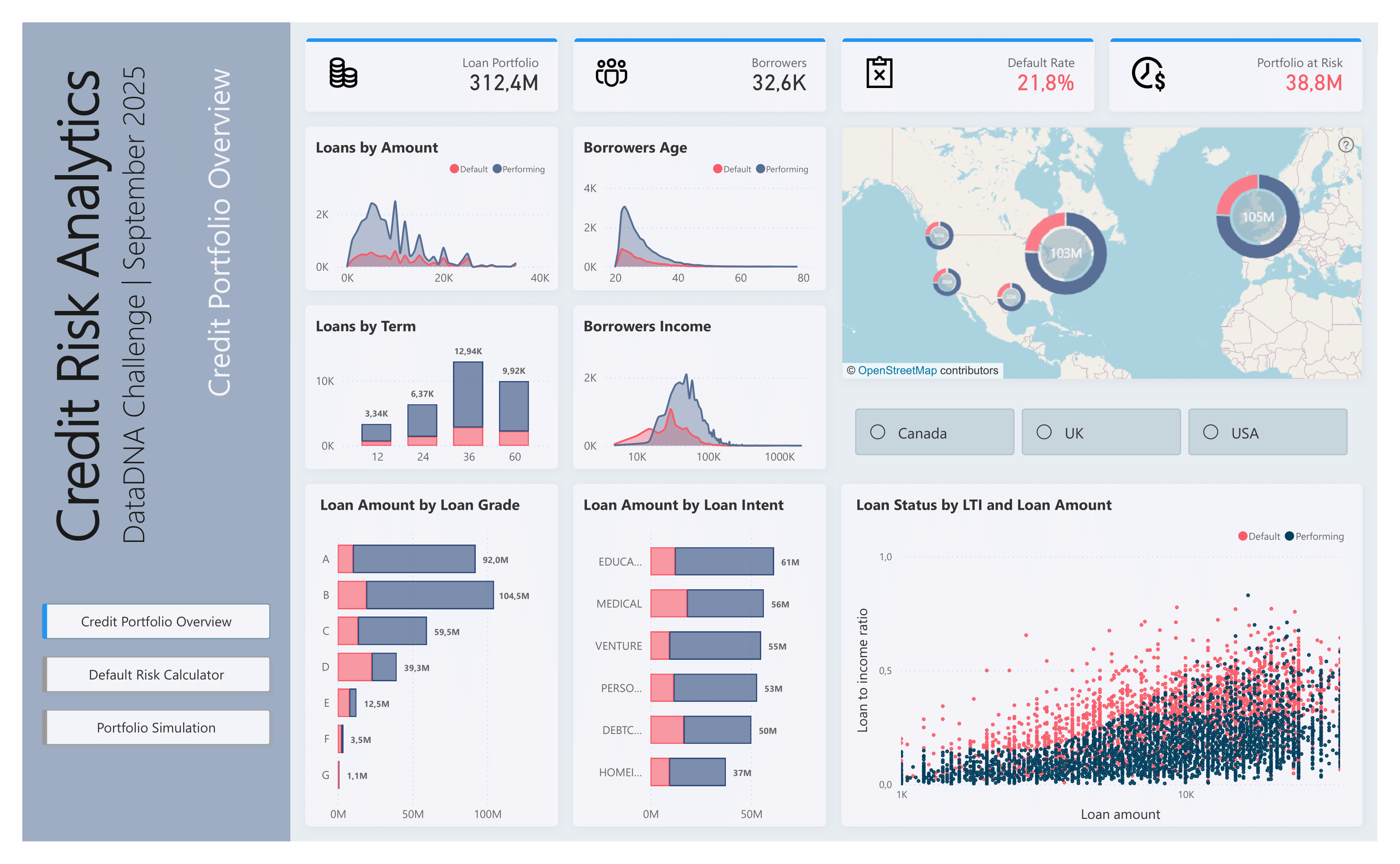 I recently took part in the Credit Risk Analytics Challenge, where the task was to build a dynamic financial risk dashboard using Power BI. Seeing the words “Risk” and “Analytics” in the title, I focused on modeling reality: building a system that could estimate default probabilities, simulate portfolio outcomes, and demonstrate the technical side of credit risk analytics.